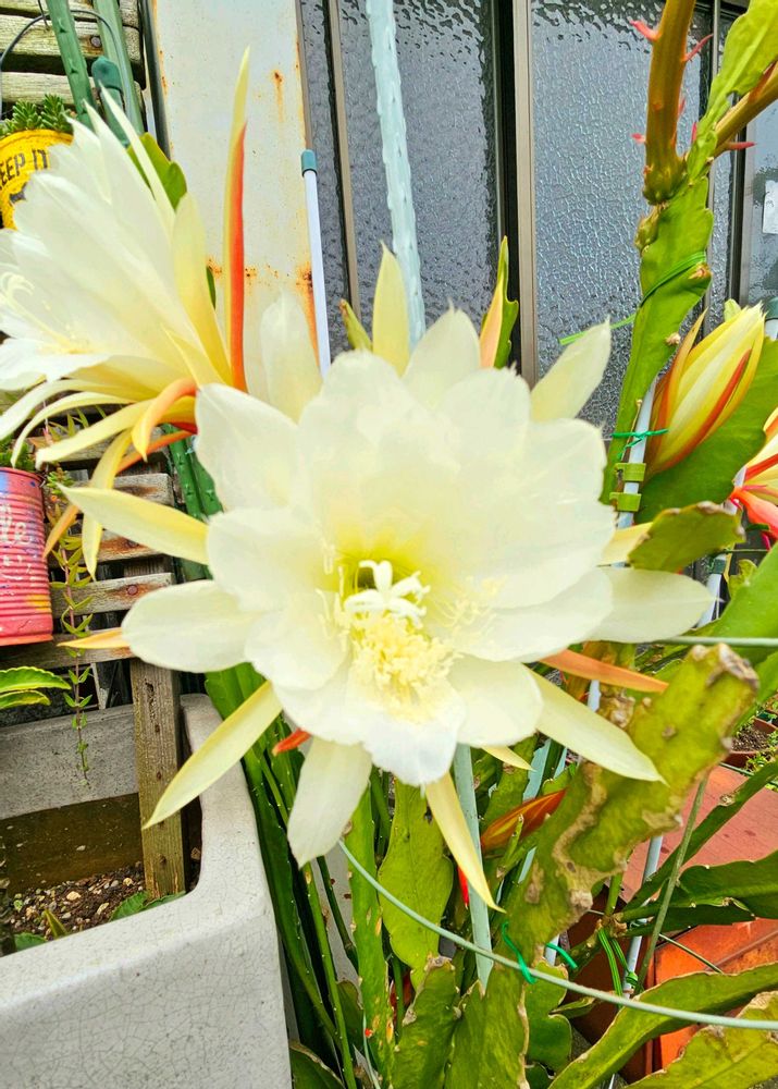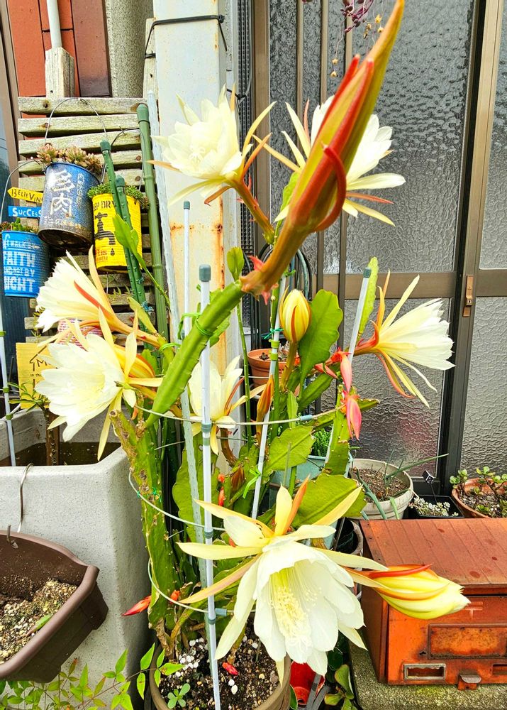 この月下美人は…明るいところで咲いているので…クジャクサボテンではないでしょうか?