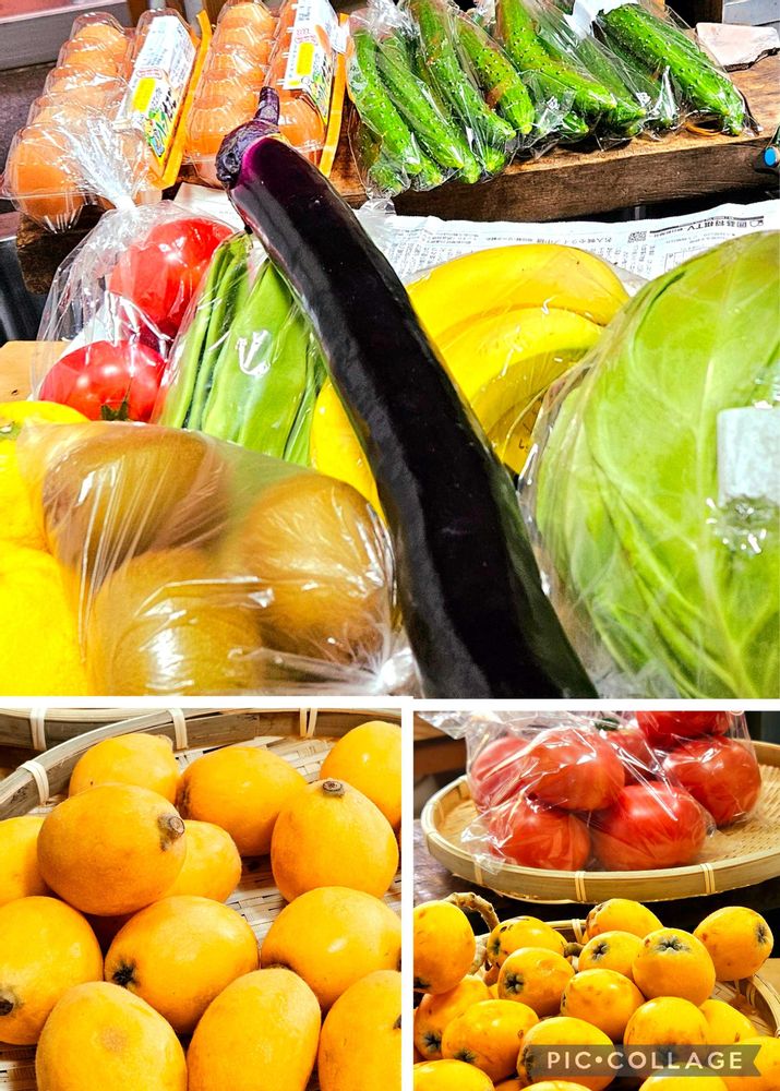 ビワ、トマト、キューリ、キウイ、キャベツ、ナス