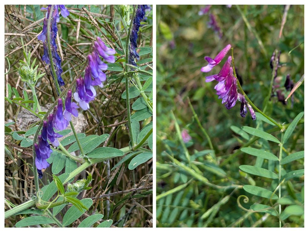 丘陵地帯の散策でマメ科のようなお花が群れていました。 以前に河川であった「ナヨクサフジ」ですね。 色が少し違う子がすぐ近くにも居ました😄