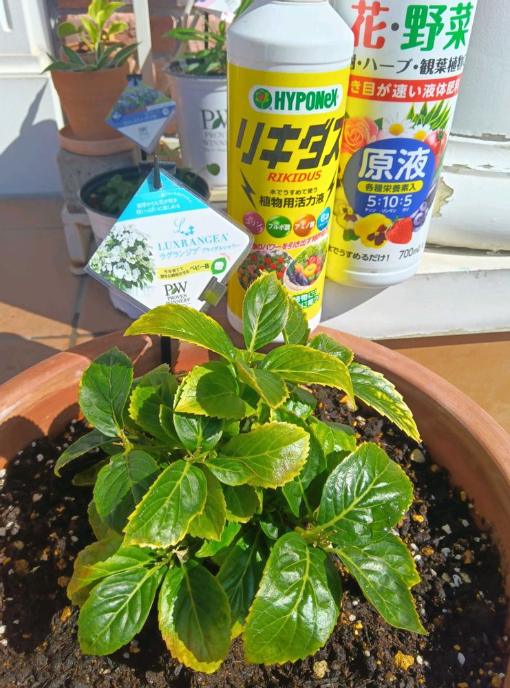 植付けから約1ヶ月、液肥+リキダスを薄めに水やり。