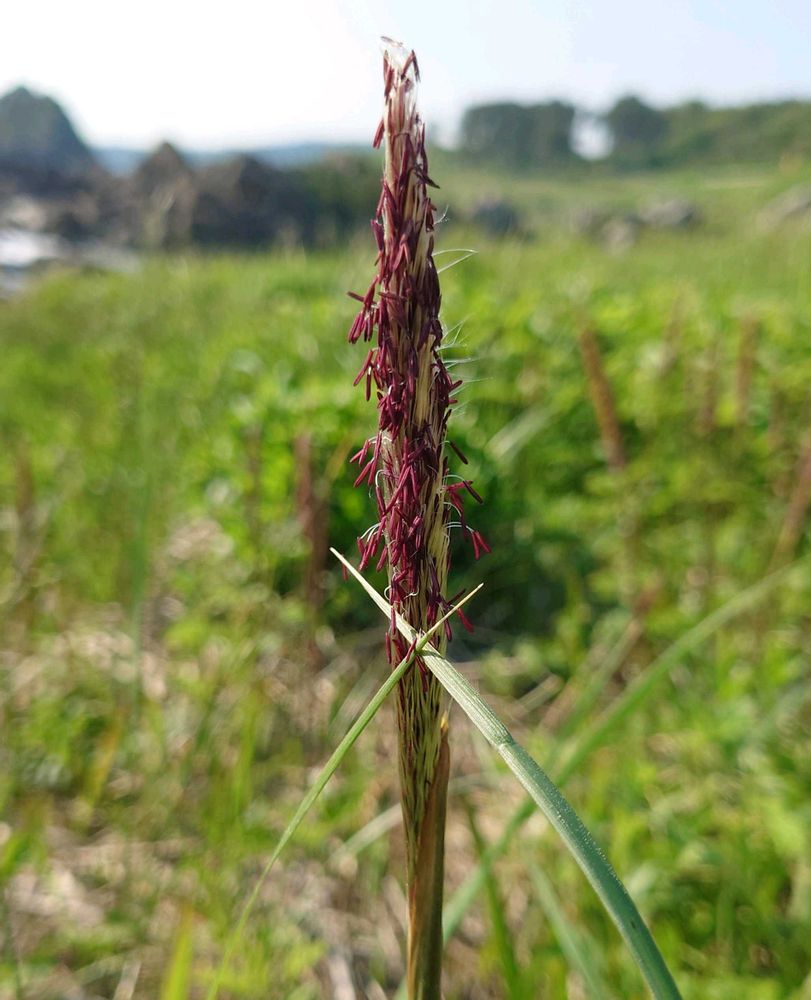 葉に先だって稈(イネ科の茎のこと)を伸ばし、長さ10~20cmの長い尾状の花穂をつける(穂状の円錐花序)