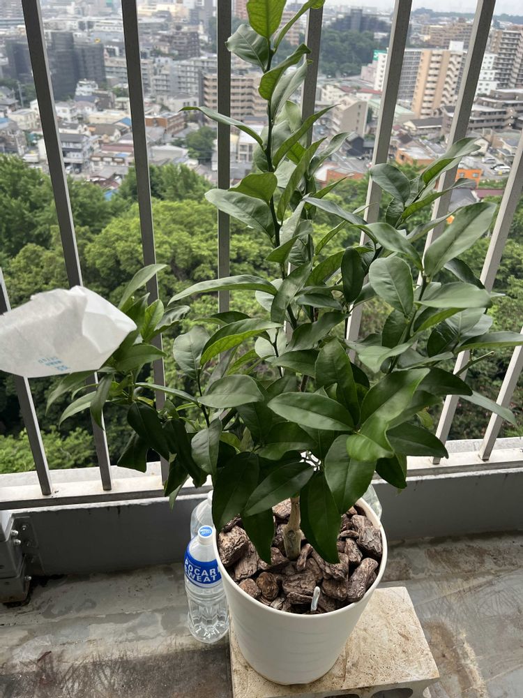 デコポンは果実が4つあったのは今は3つに。結実しないだろうなと思っていたレモンは果実がひとつ残っていたので、落ちるかもしれませんが、育つかもしれないので袋がけ。