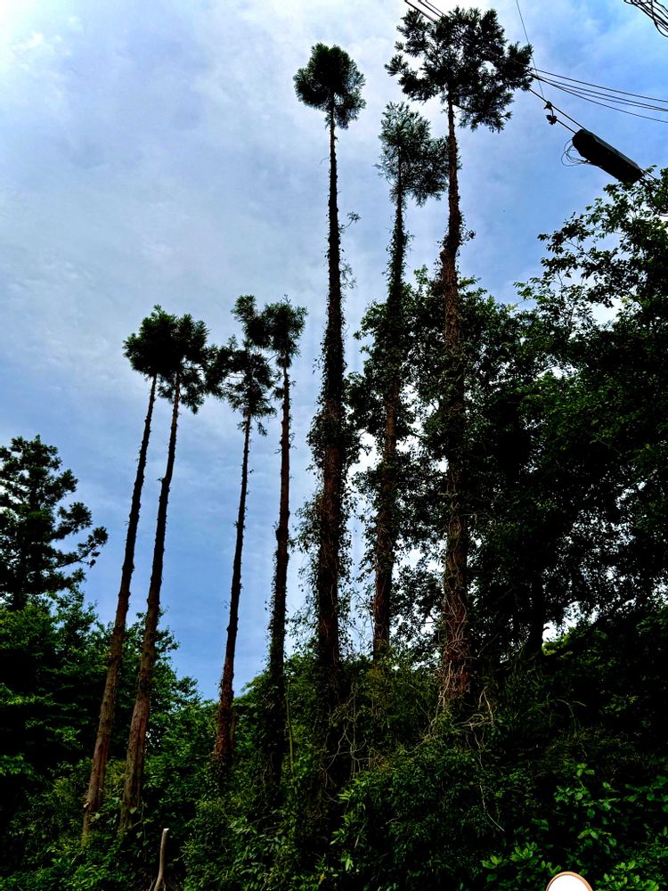 ワンコの散歩をしていたら面白い🌲があるなあ~って 思わず吹き出してしまうほど 高く高くそびえ立っていて その先に緑の葉が生えてました~ なんとなく通じますか? 笑笑