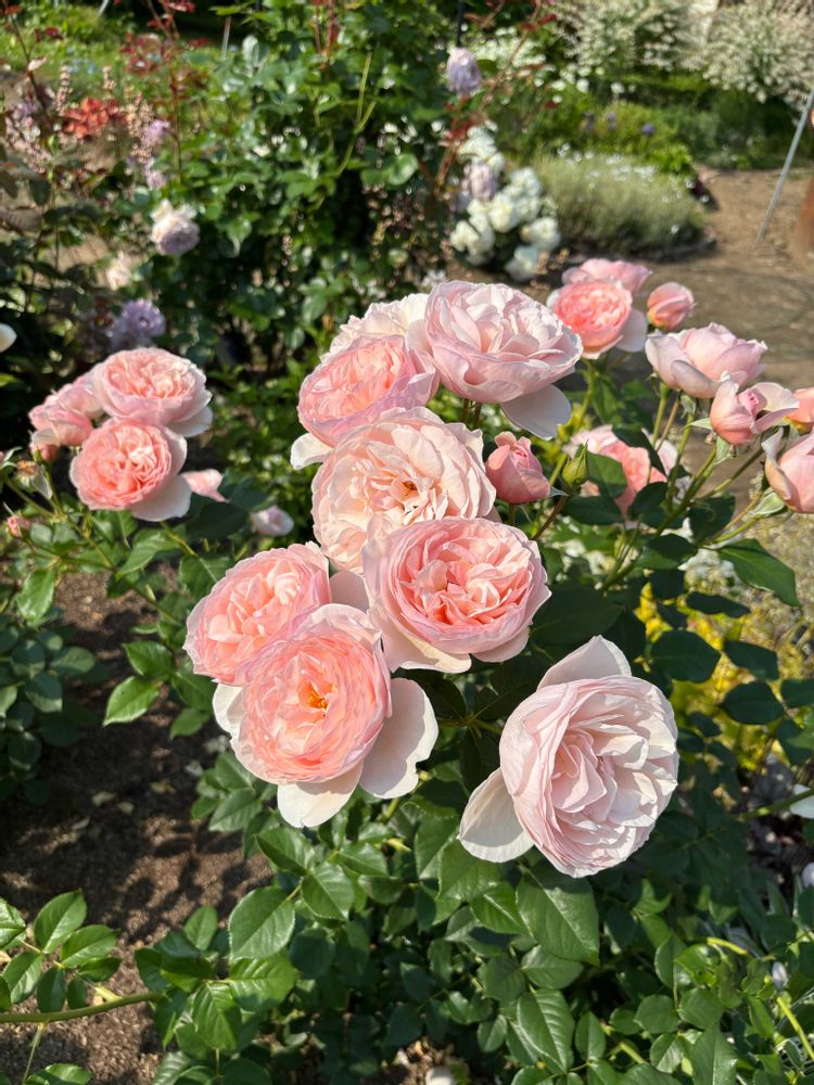 アーチの群舞に後ろのロンサール?すごい花付きですね😆