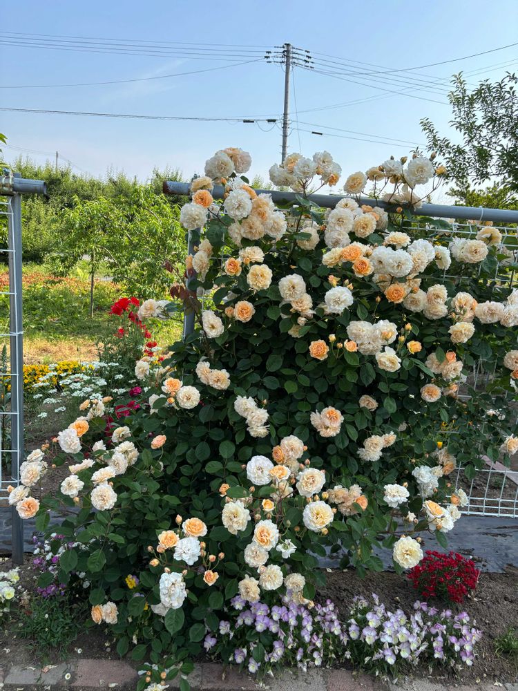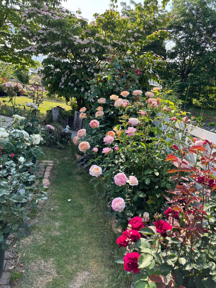 フェンスの薔薇も溢れんばかりに咲いてお見事です👏