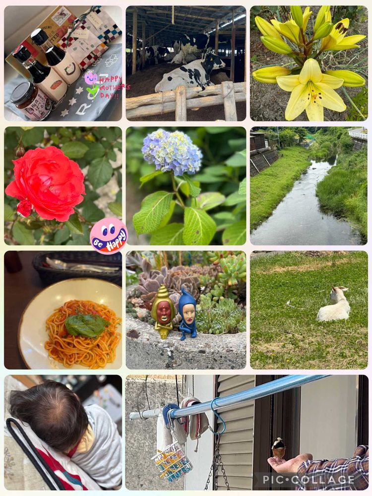 充実してたのがよくわかるよ〜娘さんからのプレゼント🎁嬉しすぎるね〜✨💕うしさんやパスタランチ🍝にヤギさんも可愛い💕
