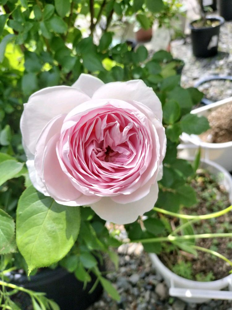このバラ鉢植えなのに、鉢の下通り越して砂利の下まで根っこ伸びてます😂