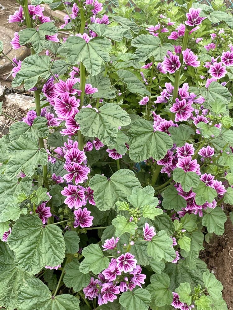 歩道脇に咲いてるのが勿体ない位のたくさんのウスベニアオイさん♥️💜