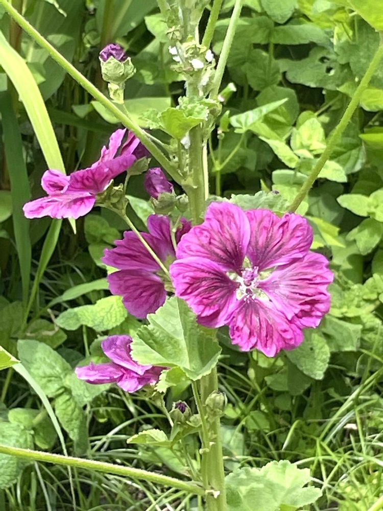 1️⃣2️⃣お出掛け先の歩道で、たくさん咲いていたウスベニアオイ♥️💜