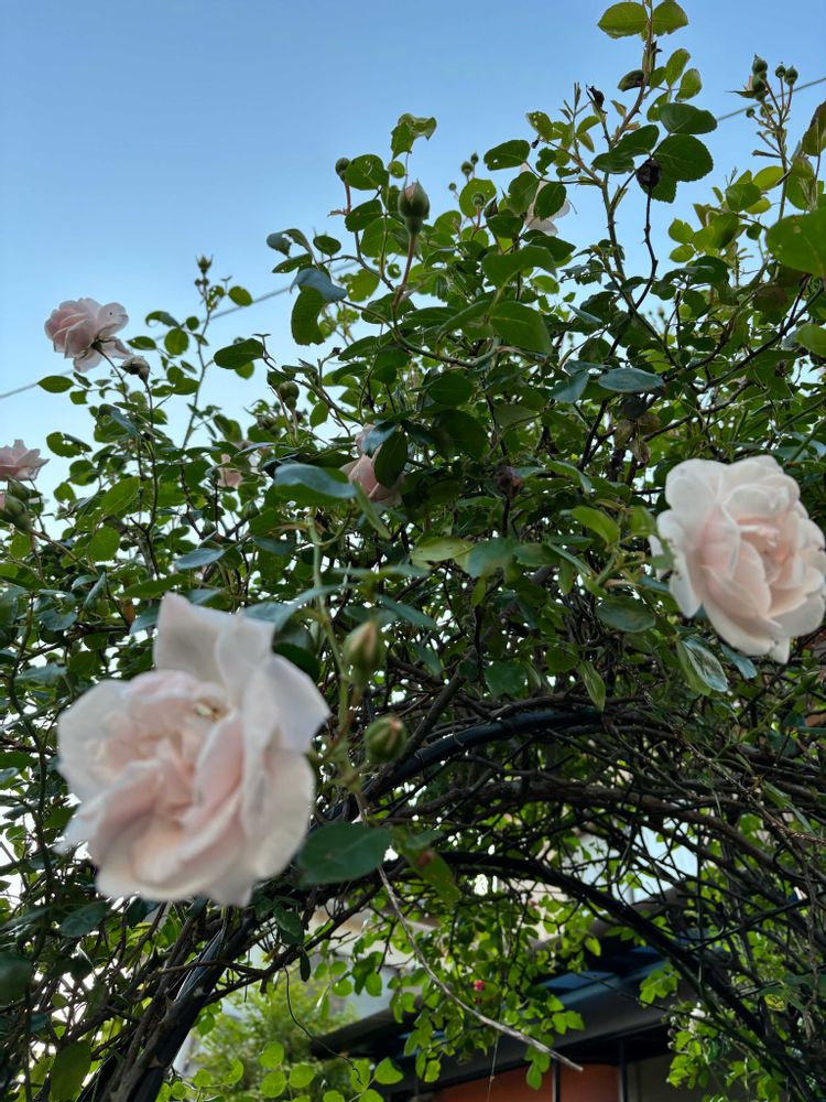 ②〜③アーチの薔薇も咲き始めました。友達から枝を頂き葉挿し〜10年程かな〜 大きく成長していて