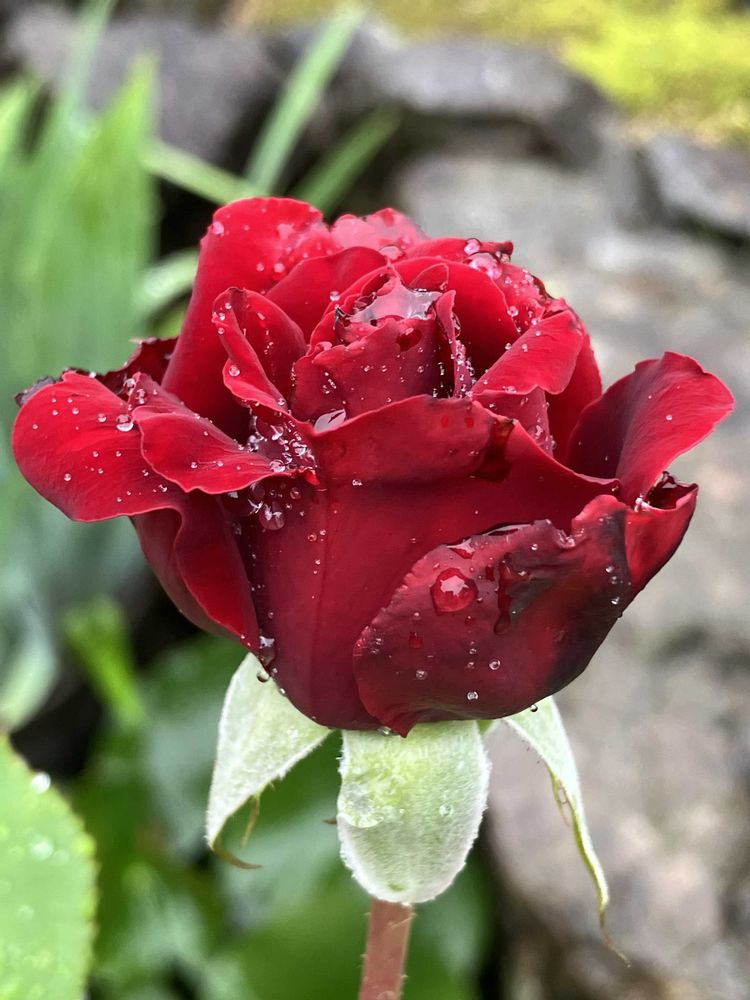 雨の滴を浴びた深紅の薔薇🌹、素敵ですね💕😍