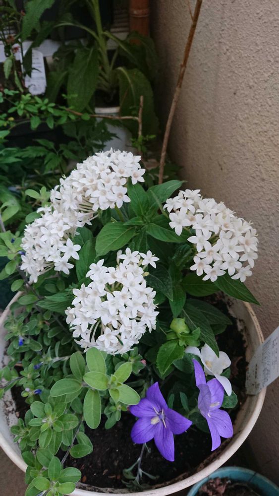 三色リンドウと真っ白なペンタス、ブルーの小花がかわいい😊