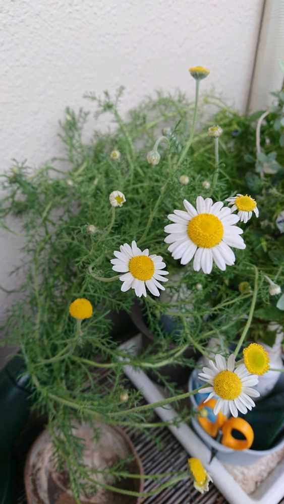 カモミールは昨年度12月に一ポット植えてたものが花盛りを迎えて、、、