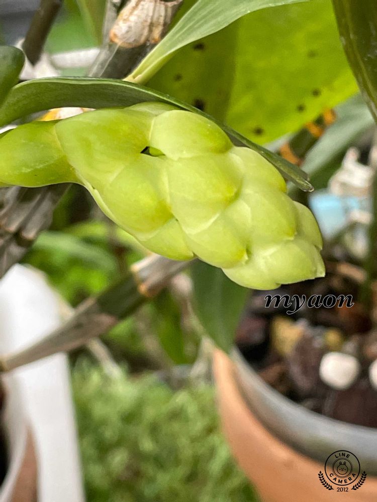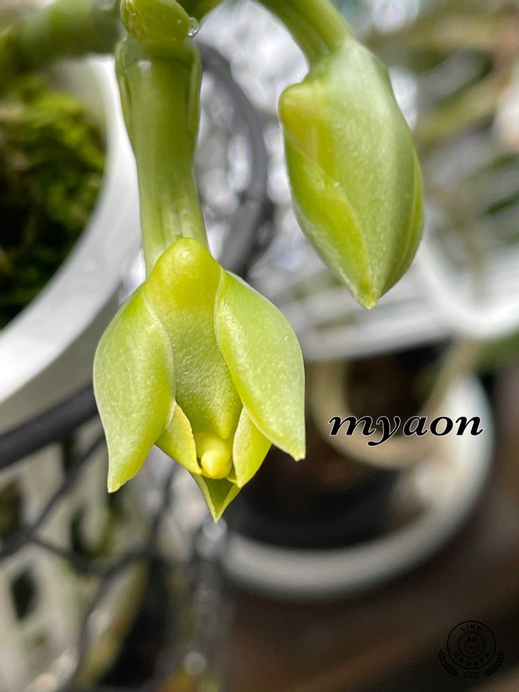 たので我が家の富貴蘭を見に行ったら花芽が2本上がっていました。無事に咲いておくれ〰️🤍💫💛