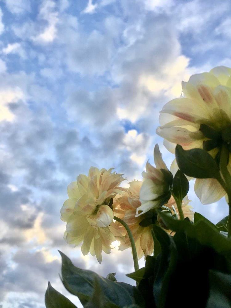 が湧く空に向かって咲くネイプルイエローのお花の写真,好きです🌟