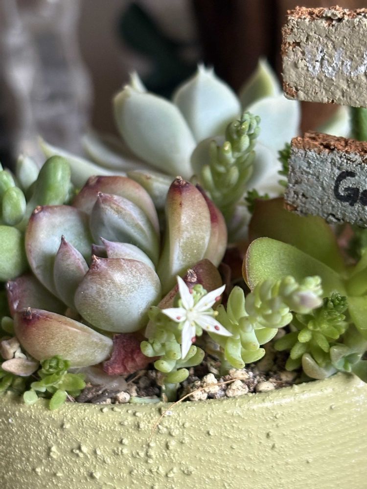 5/12投稿していた多肉さんの寄せ植えに白いお花⭐︎🤍可愛いです