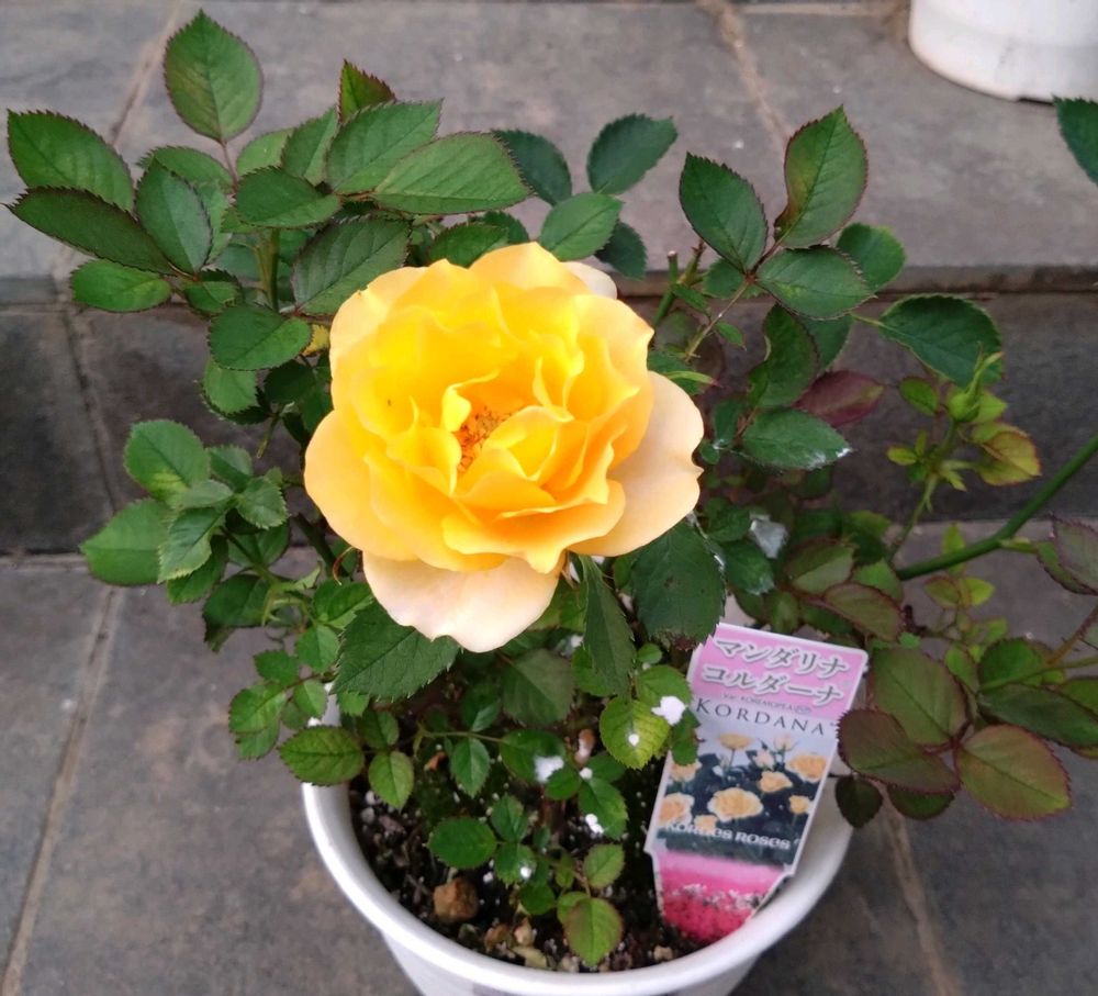 大きめのミニバラで、色も花びらのウェーブもめちゃ好み💛🧡
