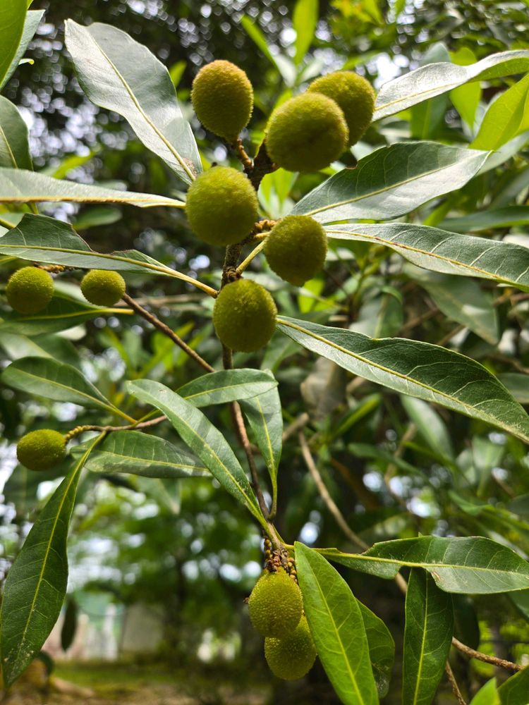 青い果実、赤く熟すのが楽しみな、ヤマモモ、早く赤く色づいて…