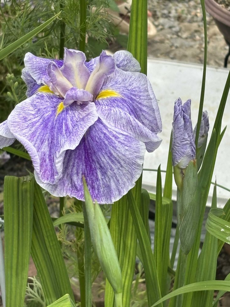 花菖蒲 霧雨(キリサメ)肥後系白地薄藍色砂子巨大輪六英花