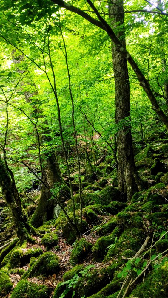 山の上の方は、まだ新緑のままで黄緑が綺麗でジプリのもののけの様な神秘的で木霊が出てきそうな雰囲気でした🌿