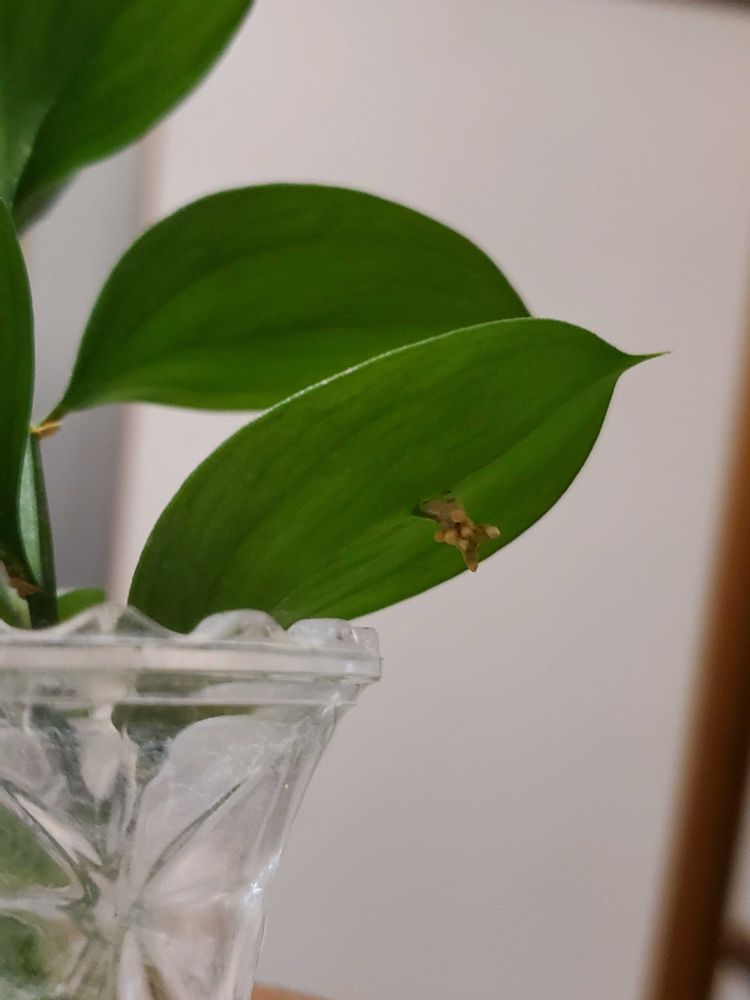 花瓶にさしていると、このように少ーしずつ大きくなってきているものは花芽のよう。ルスカスでしょうか?もしそうならインターネットで見たお花が咲くのはいつ頃でしょうか?