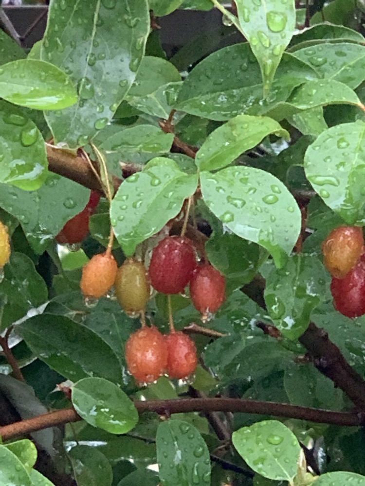 庭のグミちゃん❤️🧡昔は食べていましたが、今ではみんな鳥さんにあげています❤️お礼に南天や柊、など植えたはずもない木が周りに育っています🤭