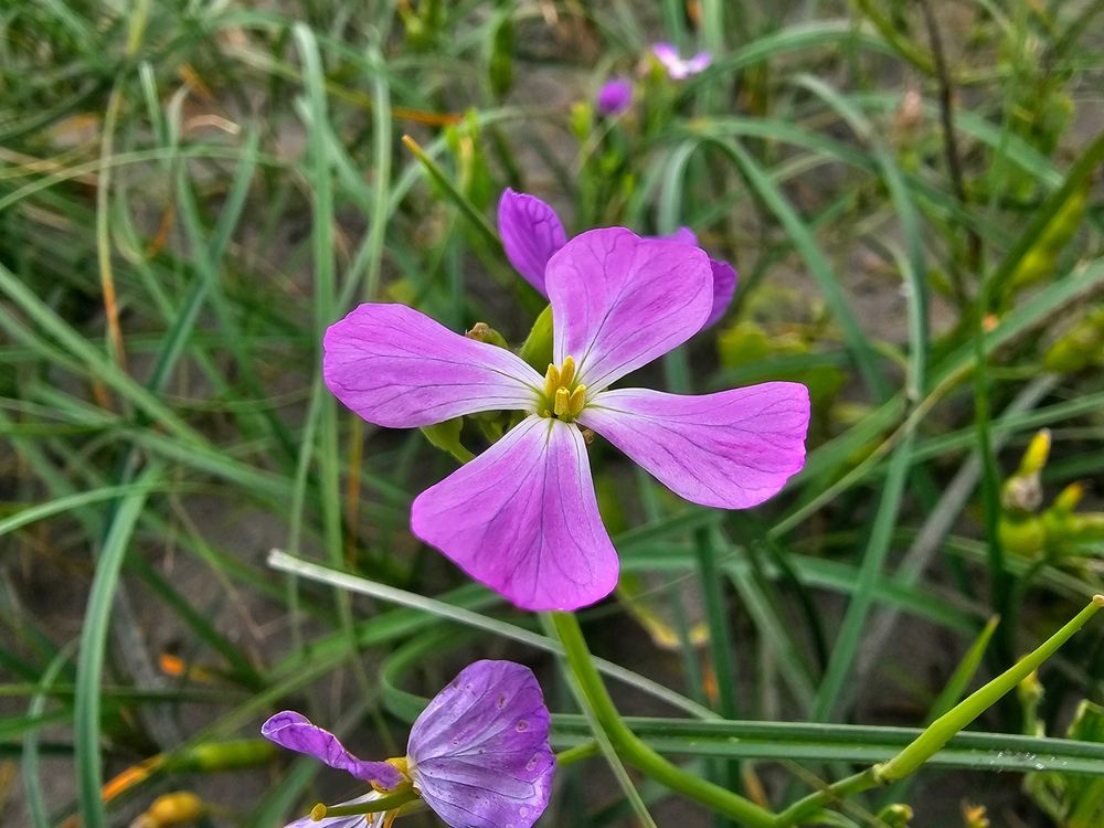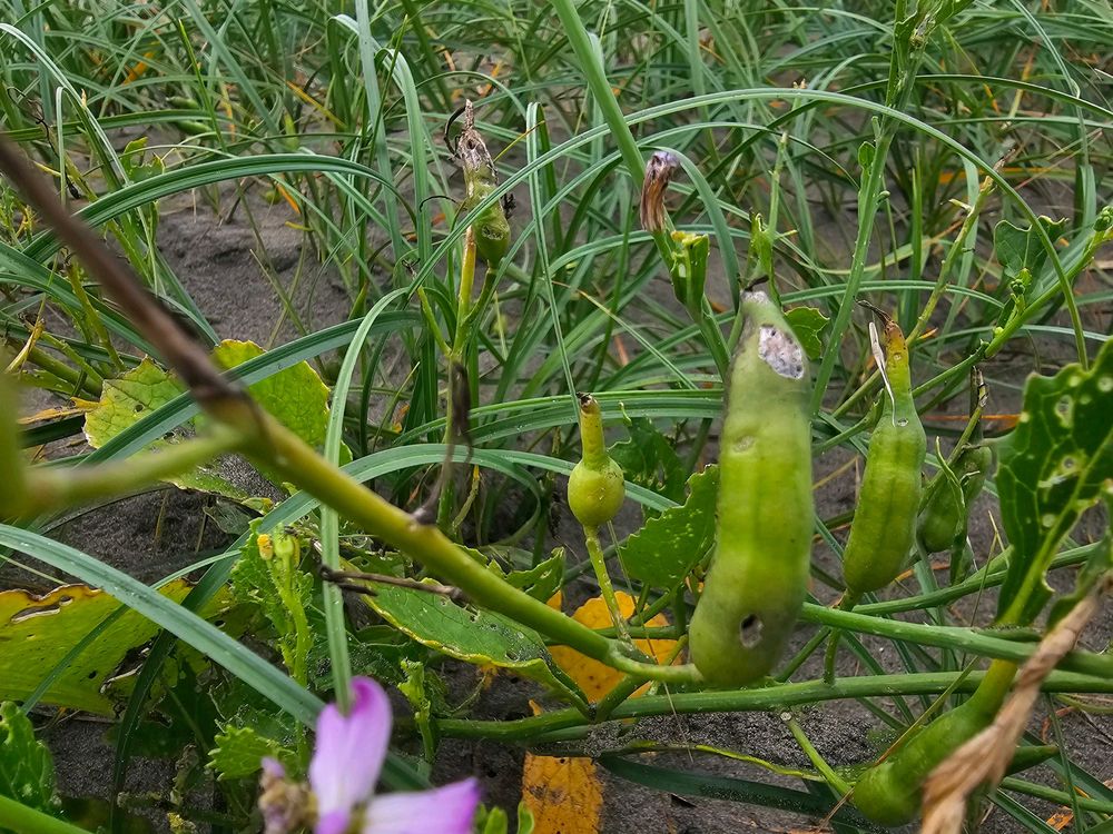 ハマダイコンは、アブラナ科ダイコン属の越年草である。別名、ホソダイコン、ノダイコン、イソダイコンともよばれる。