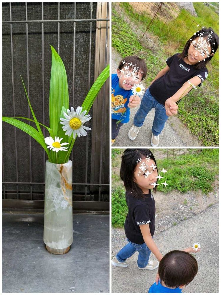 小3の次男の娘と2歳の娘の子供が散歩中に見つけたお花をばーちゃんへのお土産に………と摘んできてくれた🍃🍃