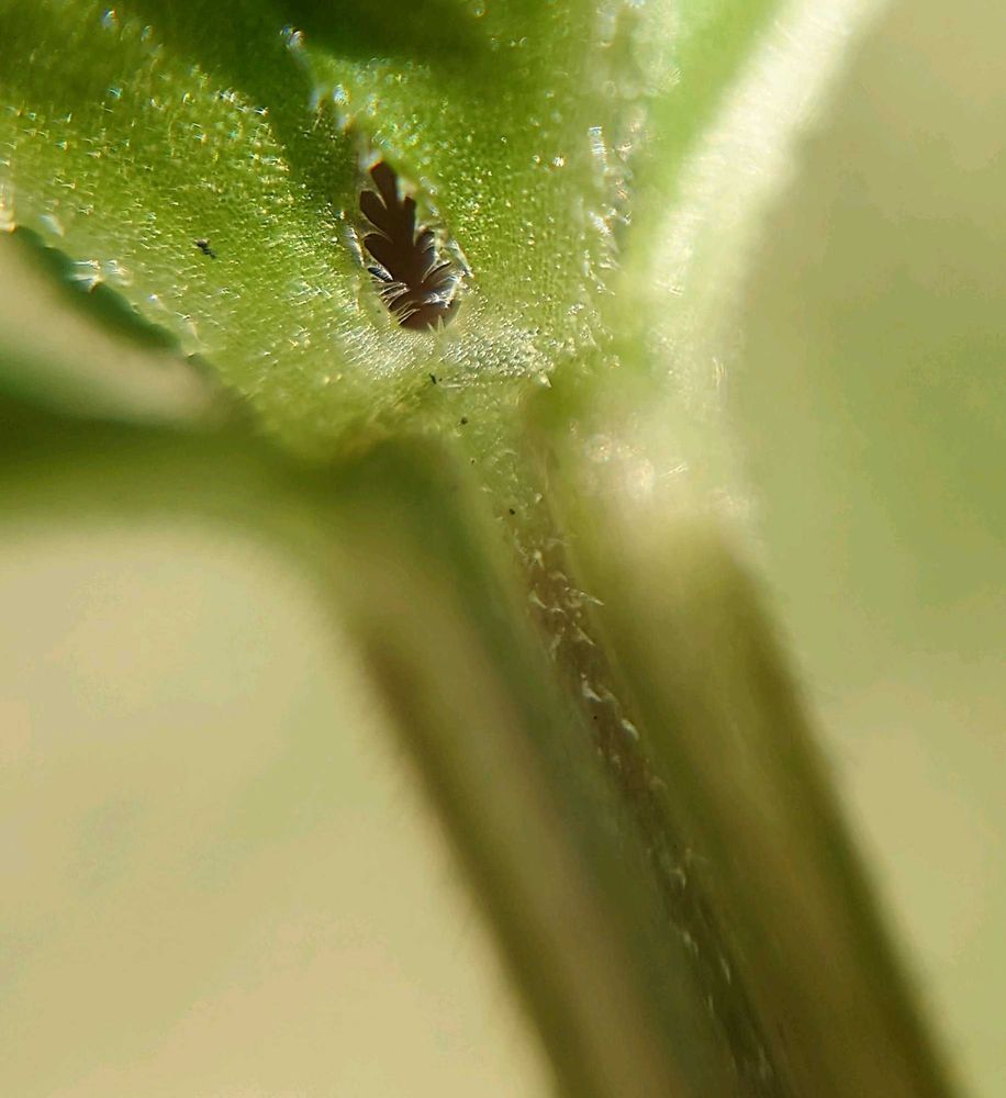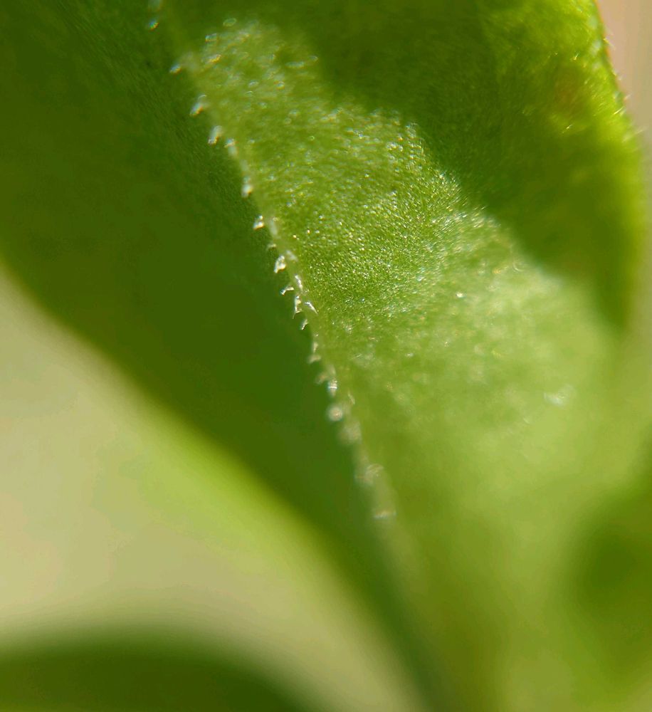 葉縁や葉裏の主脈上に刺状毛がある