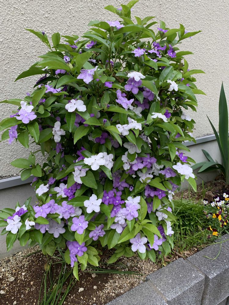 ①ご近所のニオイバンマツリ・良い香りですよね💕 ②我が家の夕映えは紅葉が残っています・陶器鉢にレースをつけて着色してみました