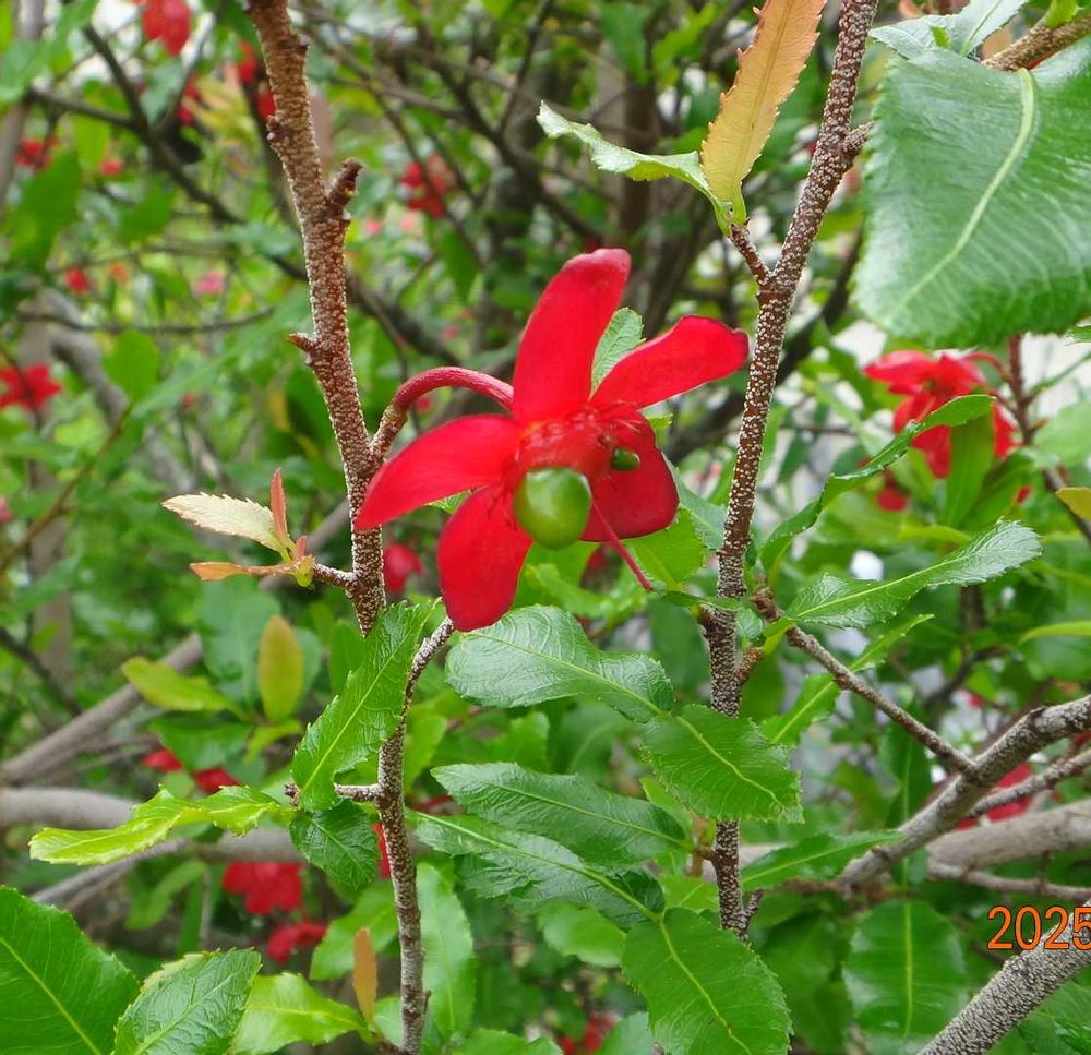 開花後に残る赤い萼と花托、黒い果実の様子からミッキーマウスの木と呼ばれている。