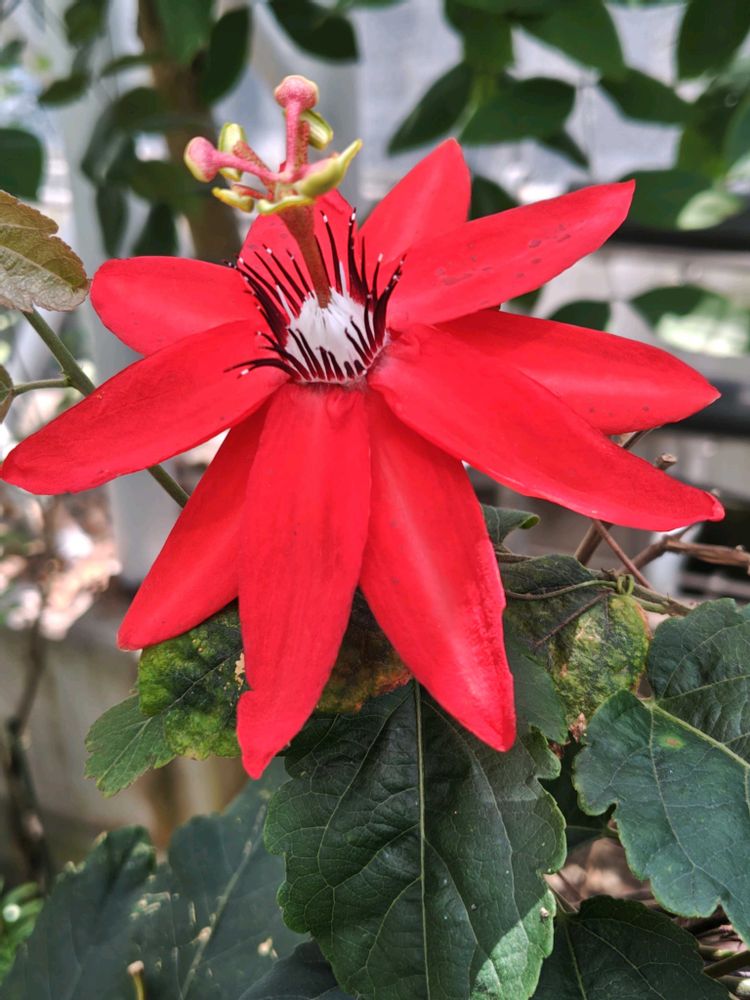 鮮やかな赤色のトケイソウ♥️を見ていると