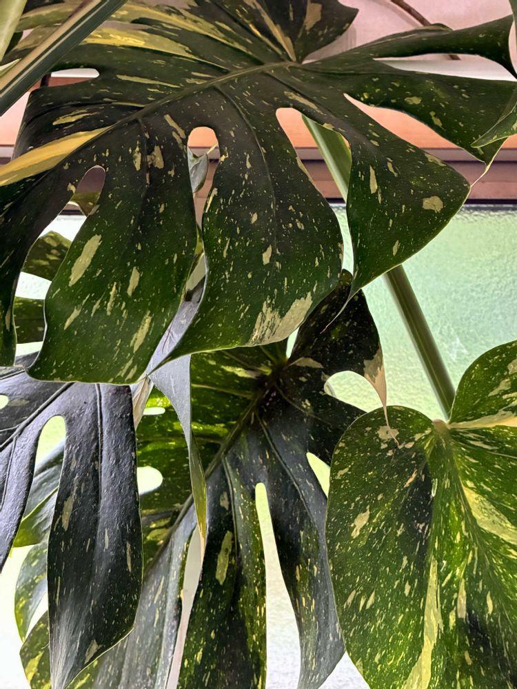 モンステラ、もうちょい小さかったらいいんだけど葉がでかすぎ…1枚50cmくらいあるんでは ジャングルじゃないのにさー