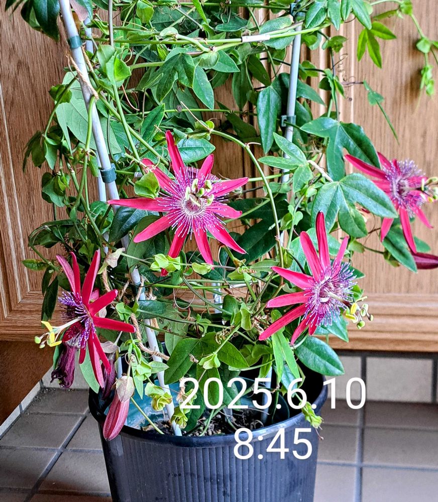 赤いスイトピーならぬトケイソウ素敵な赤ねぇ〜❣️❣️❣️