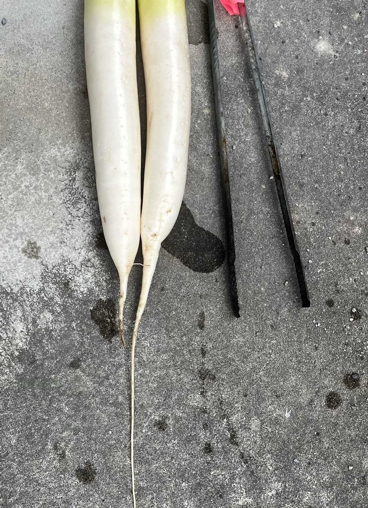 ⑤めちゃくちゃ素直に育った我が家の大根😅🙌根っこがここまで長く伸びのもあまり見たことない🤔