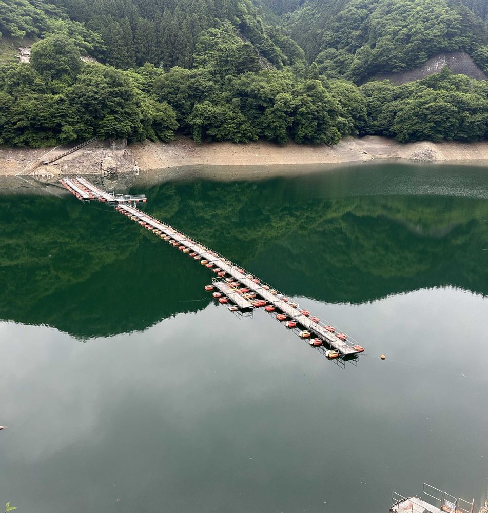 麦山の浮き橋は、観光スポットだけど水位が足りずに閉鎖してました🪜