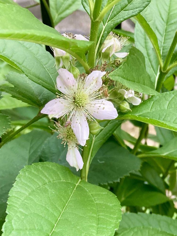 ブラックベリー(ソーンフリー)が咲きました。今年は例年よりもシュートが伸びていません。実りが少ないかも。