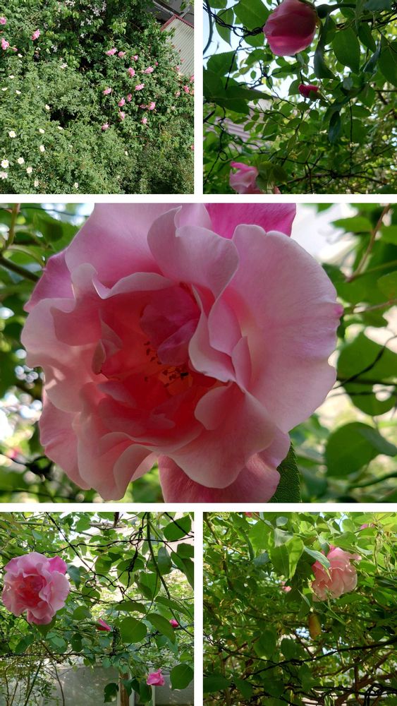2階から見た景色ものせましたが(4枚目)、下からまったく見えなくなったロサ・カニナも沢山咲いています〰️🤣