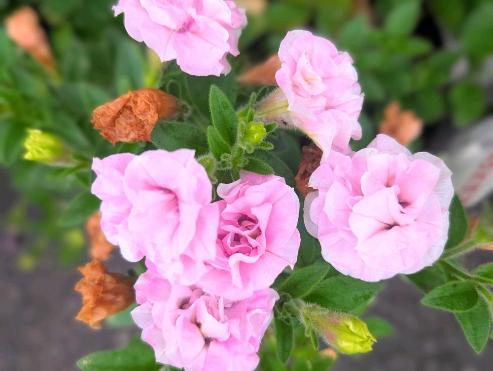 花友フェスタで限定販売されていたゲブラナガトヨさんの八重咲きペチュニアです。這性で横に広がるタイプの草姿で丁度今が見頃です。