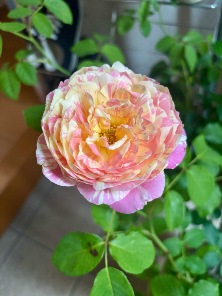 ⑤雨続きなので玄関に避難させた🌹クロード・モネ。