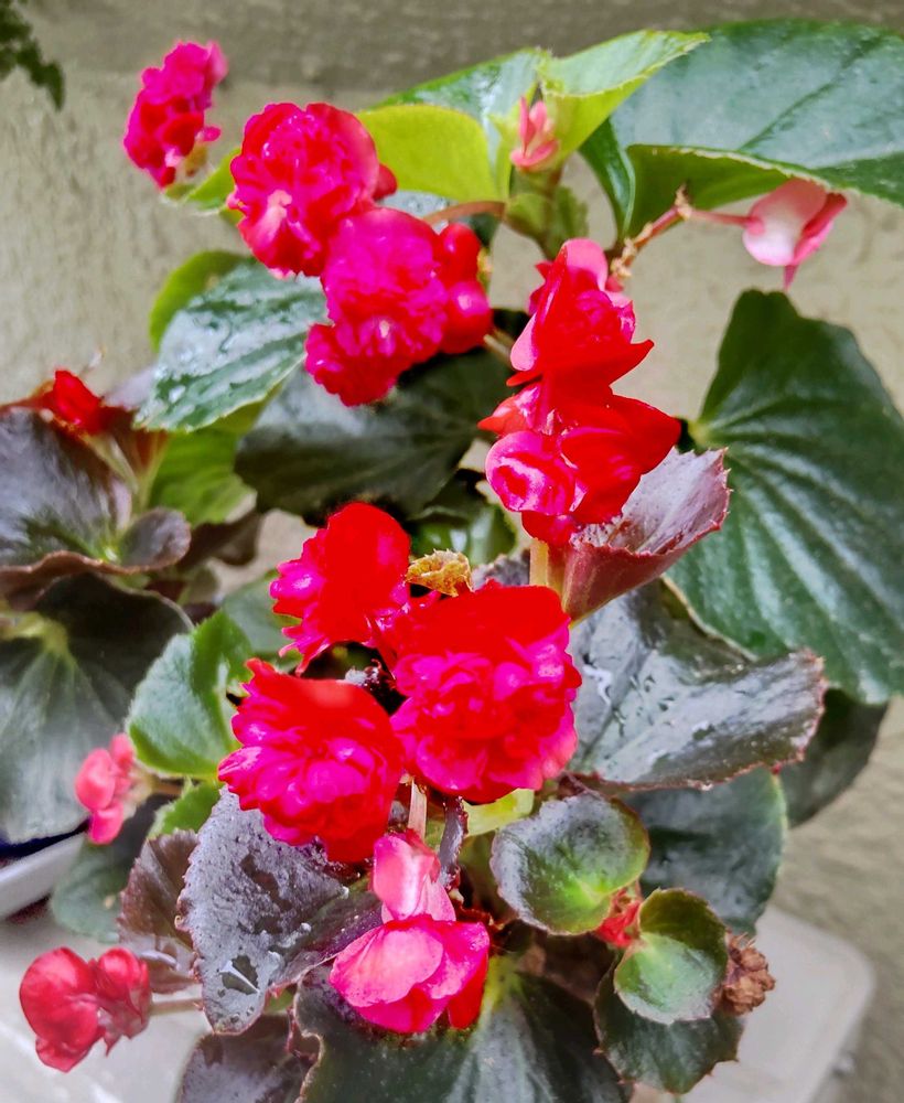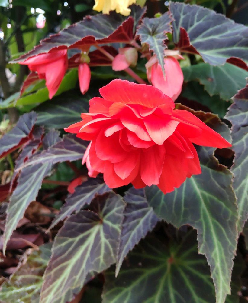 ①バラのようなお花が開いてきた、球根ベゴニア サマーウィング ダブルレッド❣️
