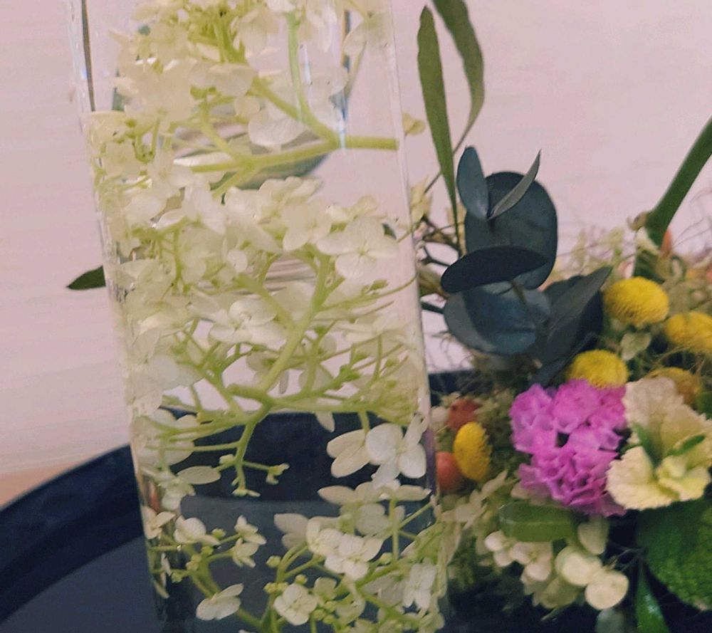 グラスの中には水中花の様にアジサイが。