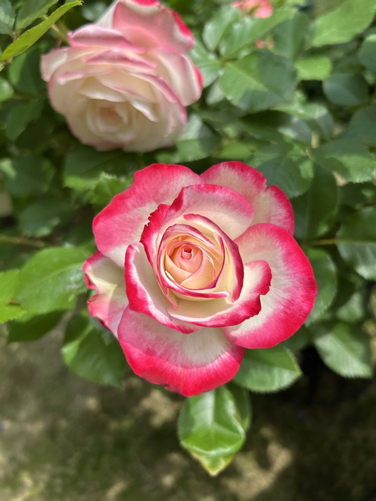 ④ご近所さんのミニバラ、可愛いんですが名前わからないそうです。絞り入って黄色と赤、可愛くないですか〜🥰