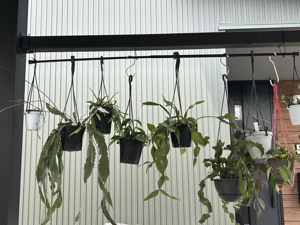 ②吊り下げる系を室内から、一部、カーポートにつっぱり棒で外管理。