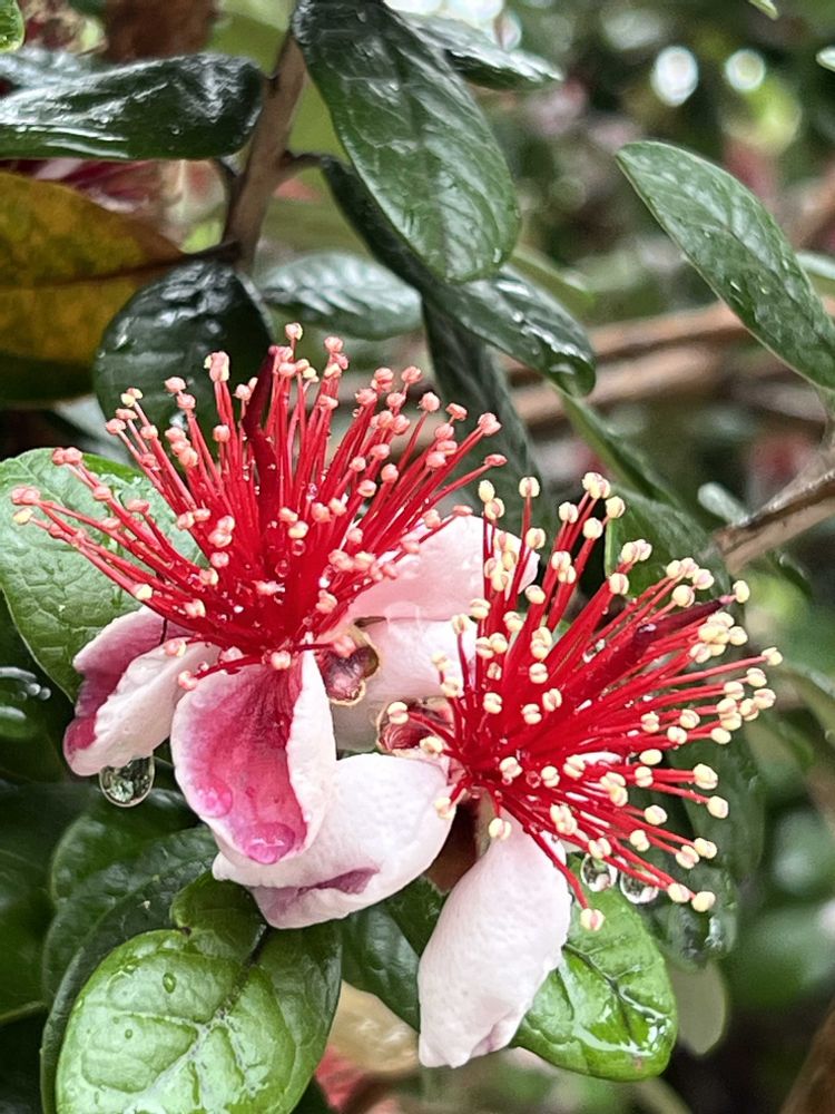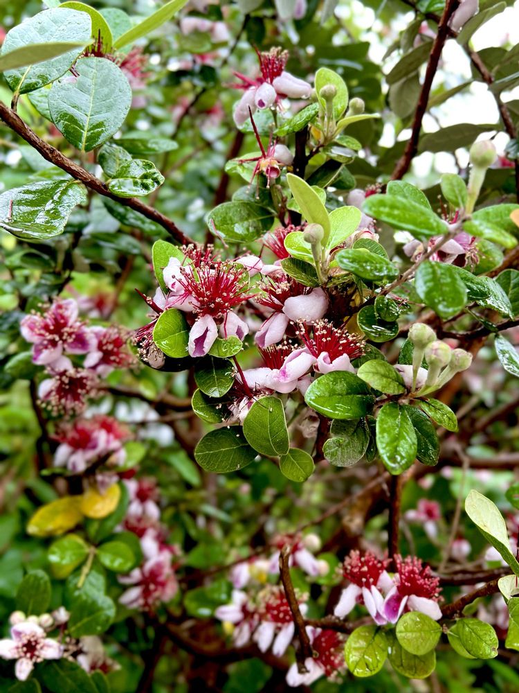 赤い蕊が素敵なフェイジョアが満開でした♪