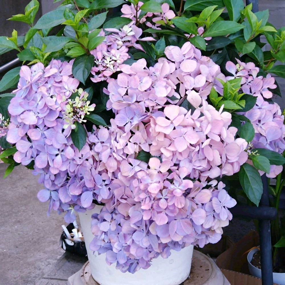 今日は、予告通り鉢植えの紫陽花を見てください〜🩷🩵💜☔