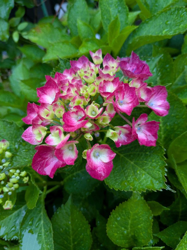 赤い紫陽花、可愛い色で咲いていますね❤️