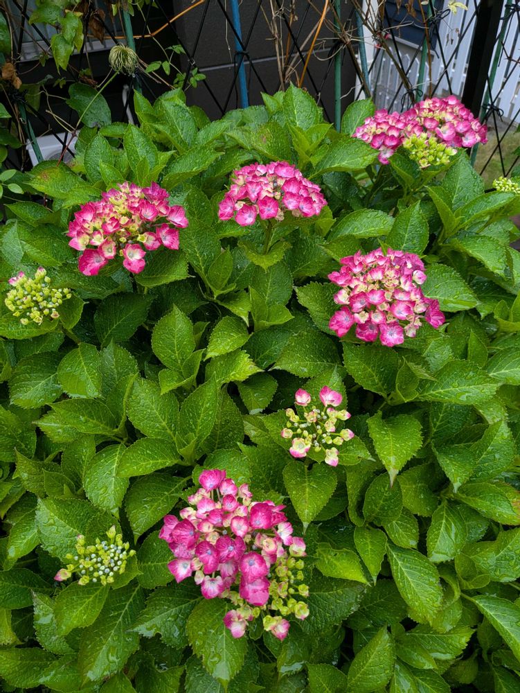 友達から挿し木でもらった。アジサイ。地植えでも、しっかりピンクです。