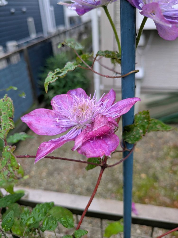 フェアリーブルーは、結構登っていくクレマチスでした。綺麗な時に写せなくて失敗、上の方で咲いています。(^_^;)