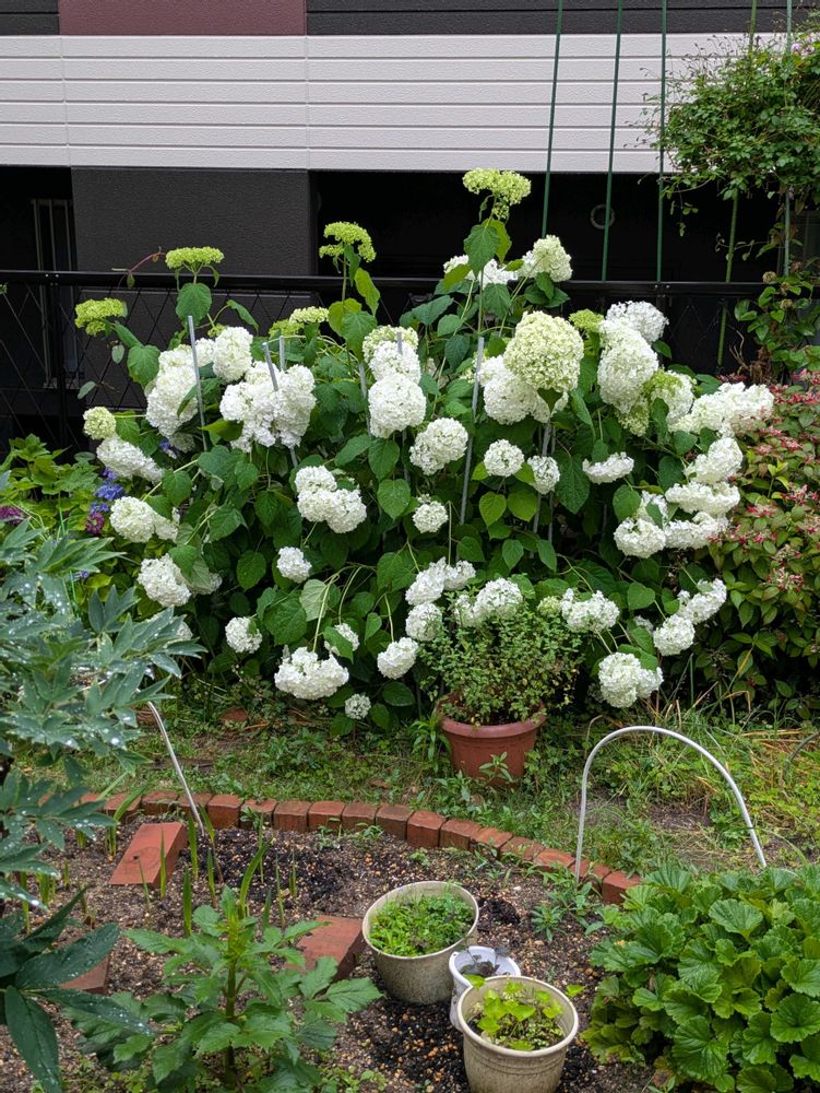 アナベル、倒れてきて支柱ばかり増えて大変ですね😫💦